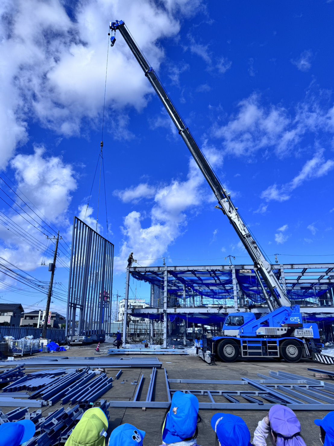 11月10日には、2025年4月に先に開園した姉妹園”稲岡くじら保育園”の5歳児が建設現場の見学にもきてくれました。